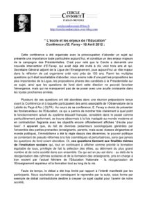 L’Ecole et les enjeux de l’éducation-E.Favey – 2012